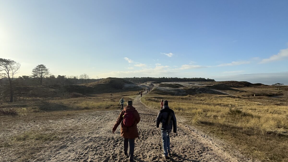 De tweede dag de noordelijke route gelopen. Dit was duidelijk en voelbaar een stuk aantrekkelijker dan de eerste route van dag1. Lekker zo’n 9km langs de zee wandelen en daarna zo’n 14km duintje op en duintje af.