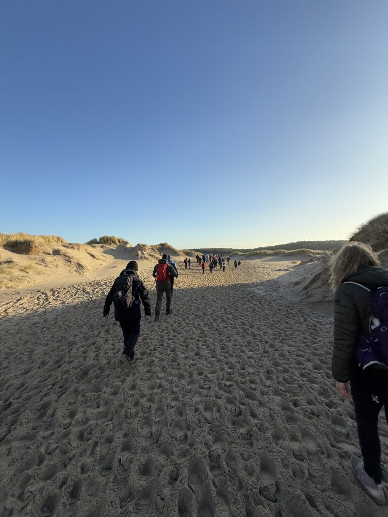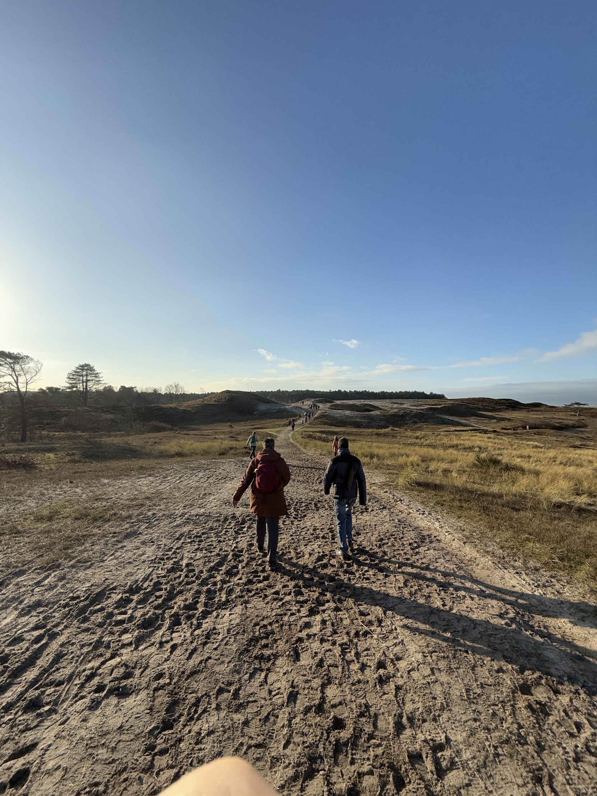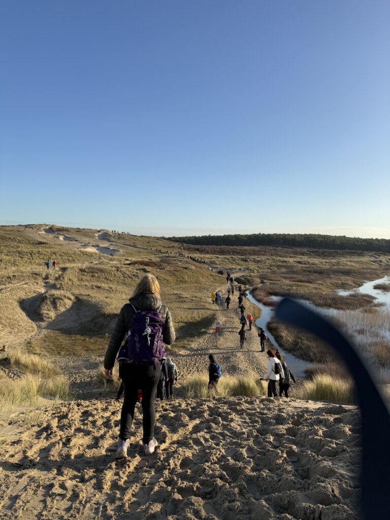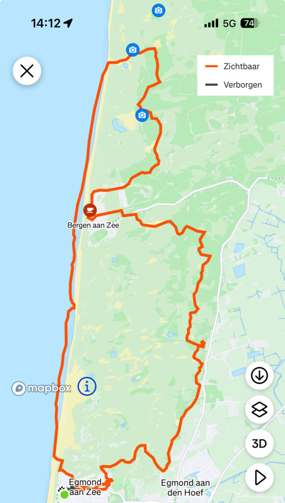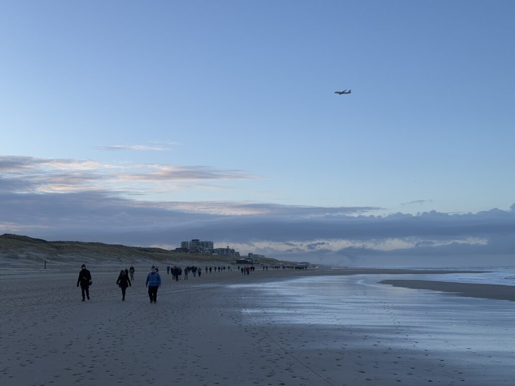De tweede dag de noordelijke route gelopen. Dit was duidelijk en voelbaar een stuk aantrekkelijker dan de eerste route van dag1. Lekker zo’n 9km langs de zee wandelen en daarna zo’n 14km duintje op en duintje af.