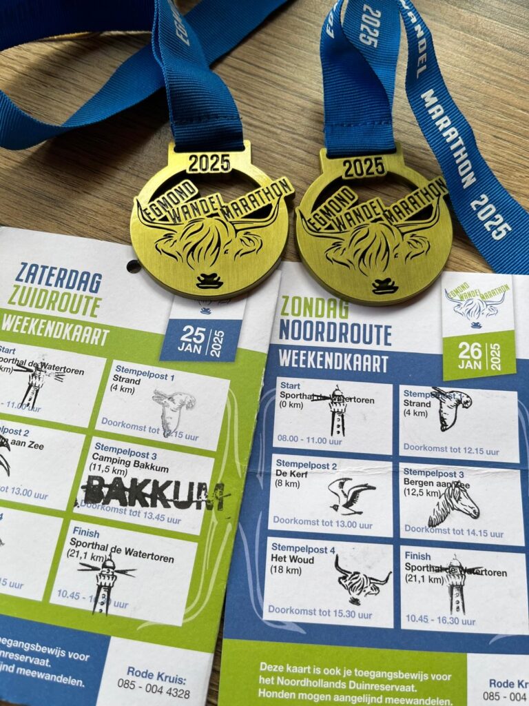 Weekend Egmond aan Zee samen met Giny Mestebeld. 2dgn de Egmond wandel marathon gewandeld. In totaal zo’n 55km,