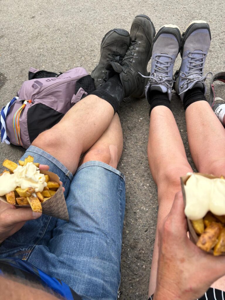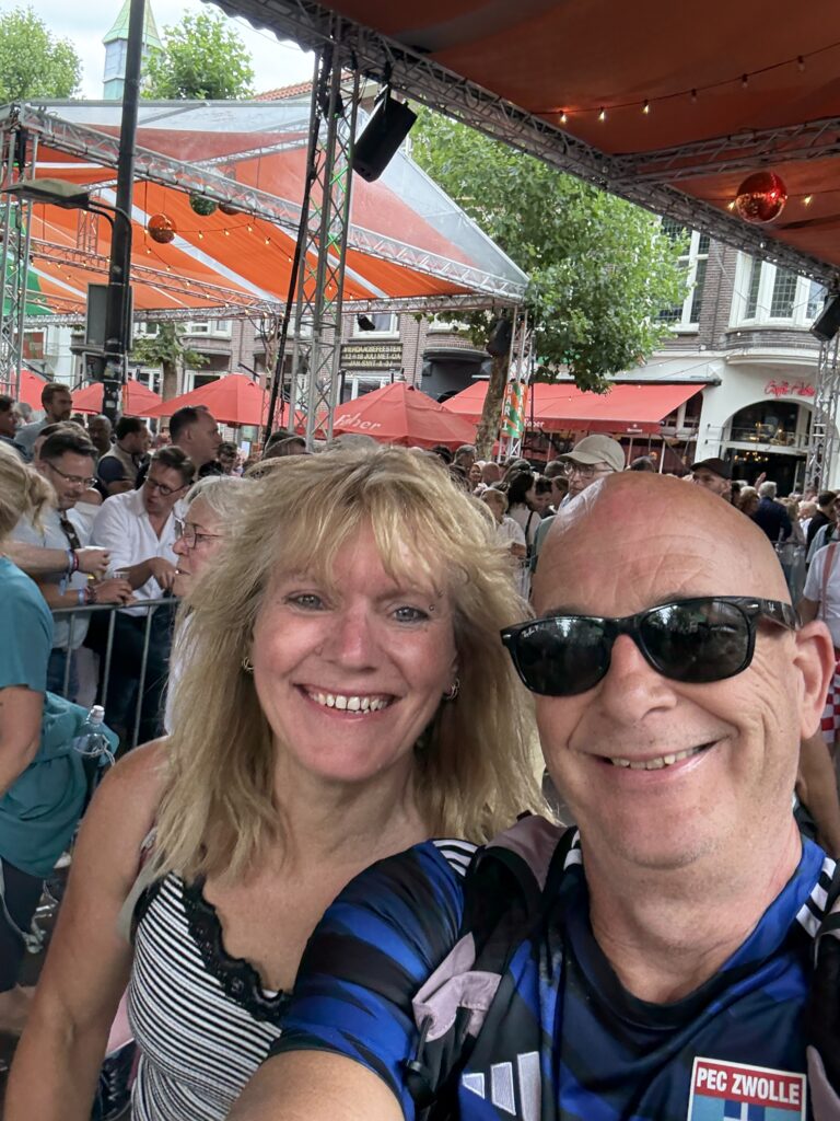 We zwaaien naar de toeschouwers en eten onze havermoutpap onderweg en deden nog even een dansje bij een dweilorkest. Wat een sfeer onderweg! Hier loop je toch voor!