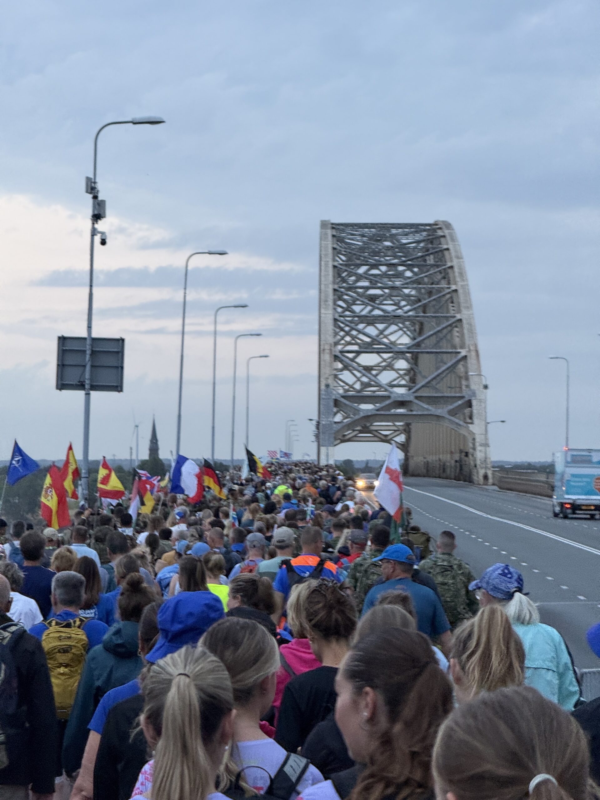 Vandaag was het eindelijk zover dat wij vrijwillig om 4 opstonden om ons voor 6 uur vrijwillig te melden voor de start van dag 1 van de Nijmeegse 4daagse.